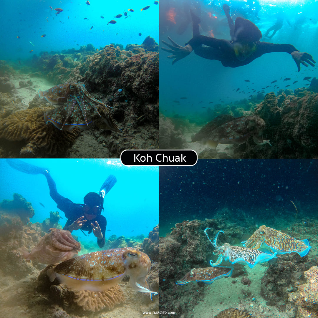 14.30 น.เดินทางต่อไปยังจุดสุดท้าย ” เกาะเชือก ” เกาะนี้ จะมีจุดเด่นคือ มีปลามาต้อนรับเรา เมื่อเวลาเรือจอด ให้เราได้ถ่ายรูปกับฝูงปลามากมาย ทั้งใต้น้ำ และ บนบก แถมที่นี้ ยังมีปะการังแข็ง กัลปังหา และ ปลาการ์ตูนให้ท่านได้มาชม
